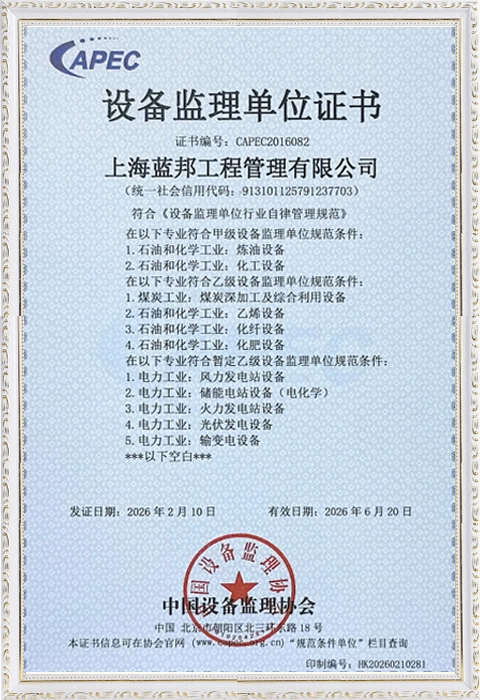 公司有一批在压力容器、动设备和压力管道监理方面有丰富经验的专职监理师,人员的组成主要来源于国内知名设备监理公司、设计院和制造厂。曾经监理过的项目有:多个千万吨级炼油厂的核心动、静设备监理;100万吨/年乙烯设备工程中的裂解分离装置冷箱、乙烯裂解设备和三大机组设备监理;LNG接收站所有低温设备材料设备监理;聚乙烯、聚丙烯项目设备监理;化纤设备工程中的PTA设备监理;己内酰胺成套设备监理、煤化工领域的煤气化工程和煤液化工程中的气化炉、反应器等核心设备的监理,大型煤制烯烃、甲醇项目的甲醇合成塔、反应器、塔器、换热器等设备监理,化肥尿素装置中的尿素合成塔、高压冷凝器、CO2汽提塔、高压洗涤器等高压设备监理,合成氨装置中的氨合成塔等设备工程监理。在通用设备领域,包括大型离心、往复式压缩机、烟气轮机及自备电站锅炉、变压器、发电机组、泵、阀、管件等设备监理。